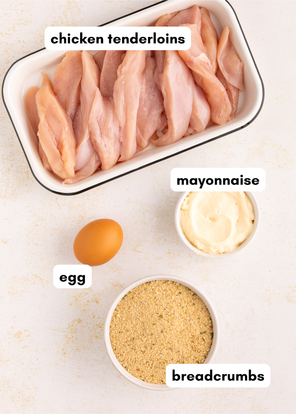 - chicken breast. Sliced into strips so the tenders cook quickly and evenly in the air fryer.