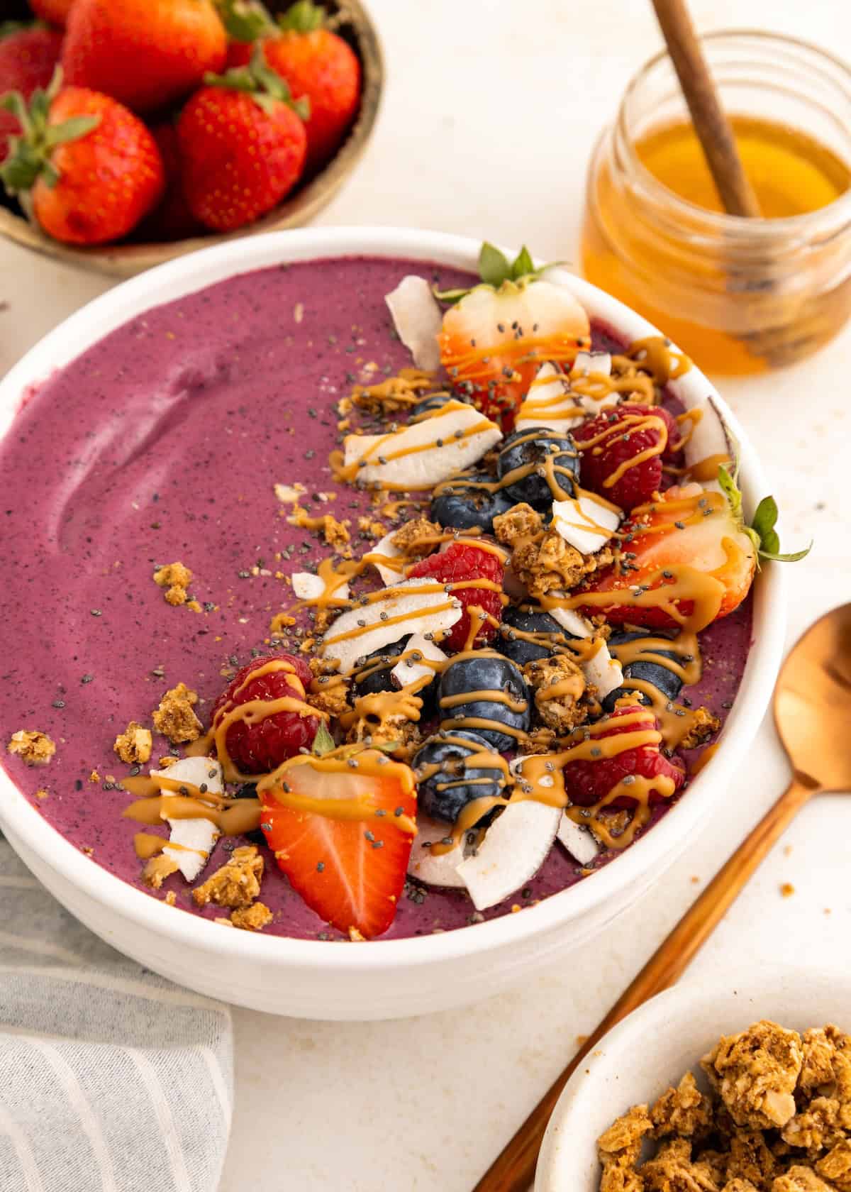 - protein powder. Turns this into a true protein açaí bowl, use a flavor that pairs well with berries.
