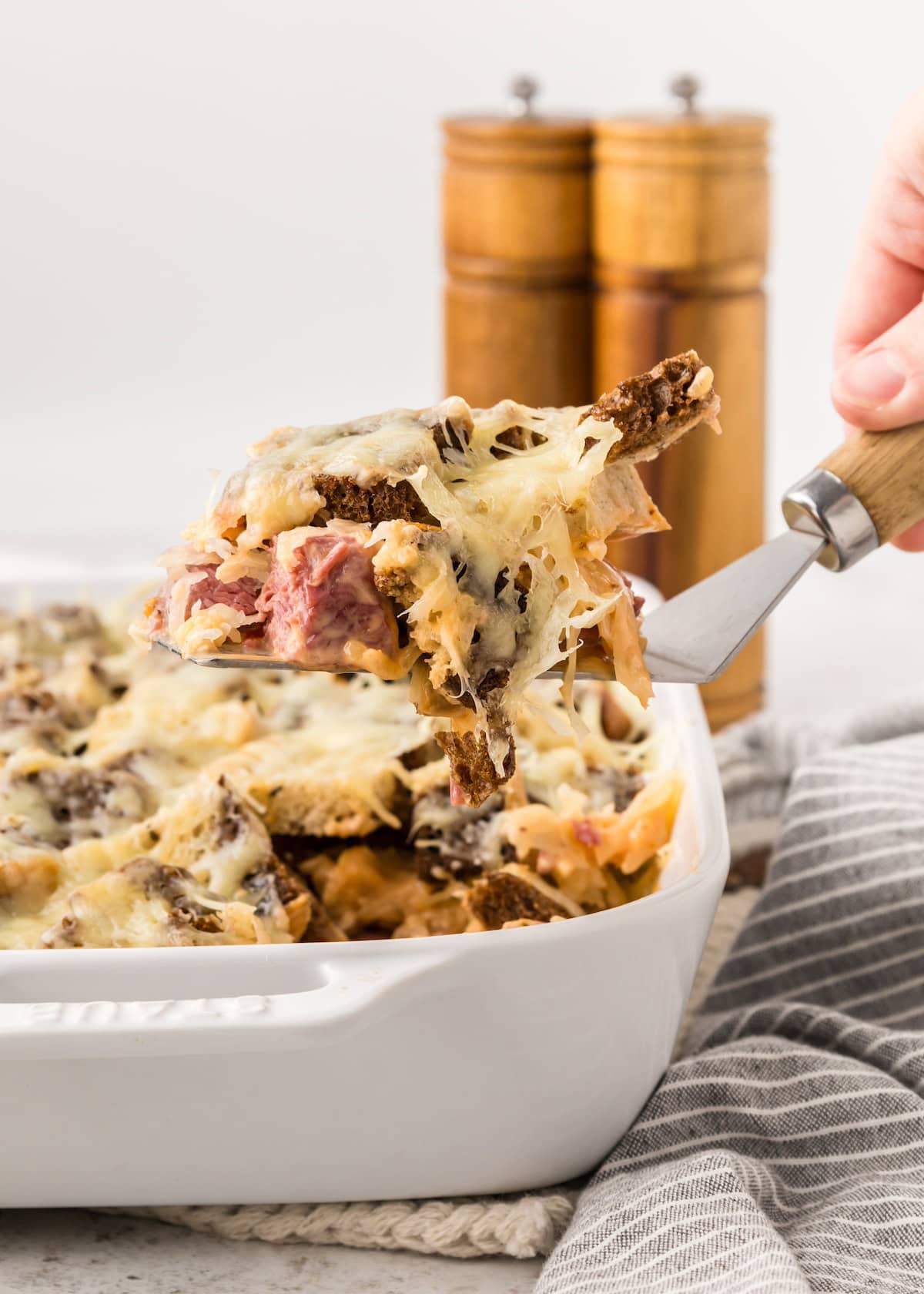 - marbled rye bread. Gives the casserole that signature Reuben flavor and bakes up with crisp edges.