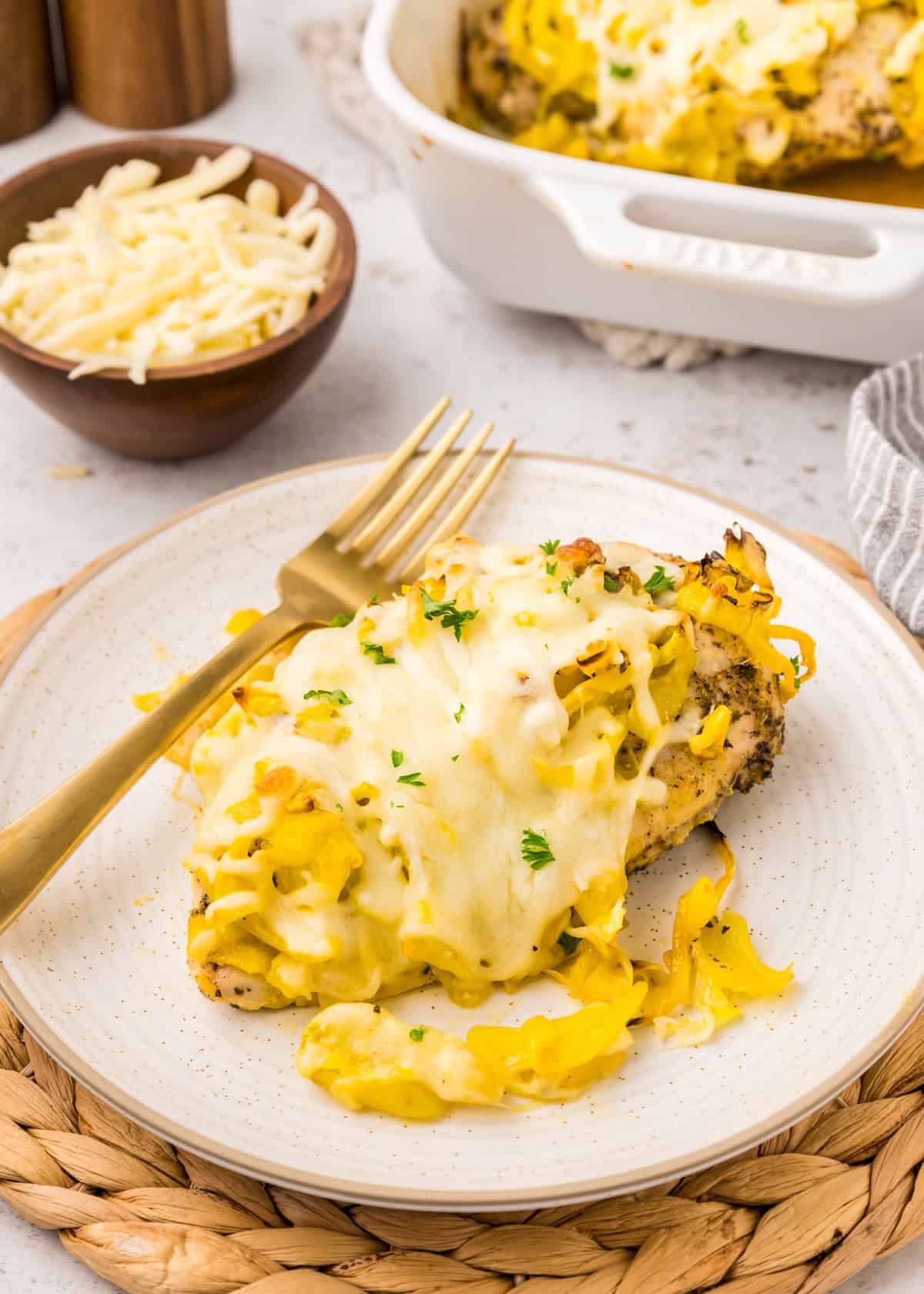 Banana peppers have such a unique, bold flavor. Combined with a mozzarella cheese topping and a tangy vinegar marinade, this is a standout amongst chicken dinners.